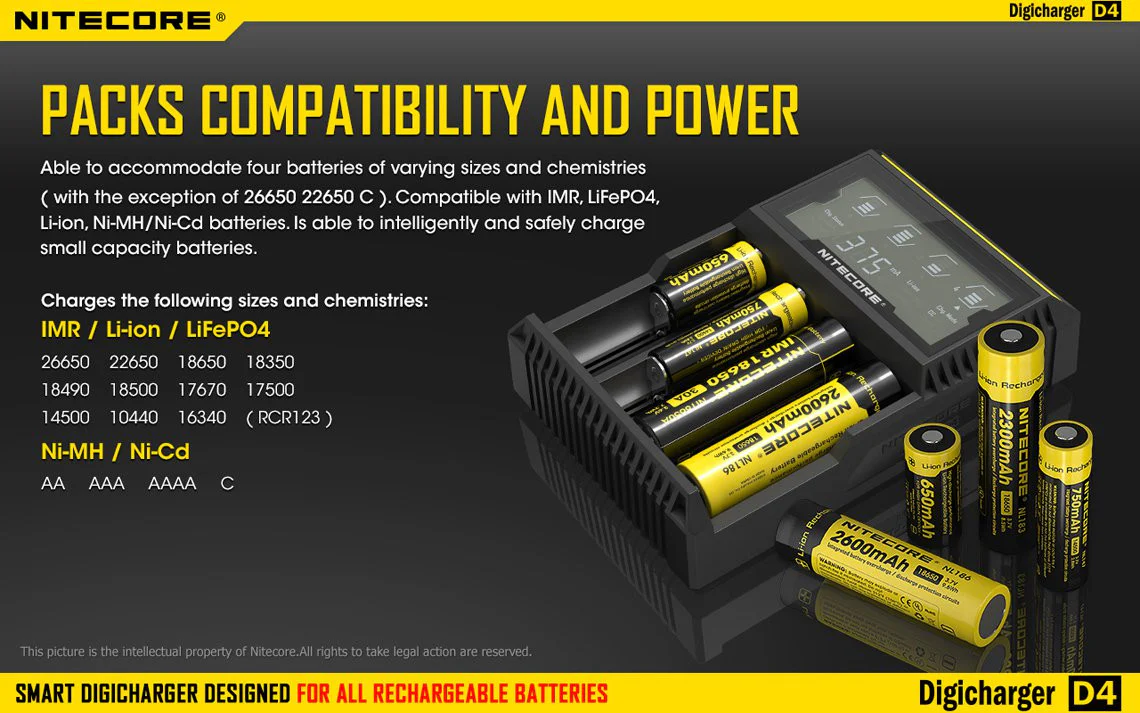 - Nitecore D4 Digital charger